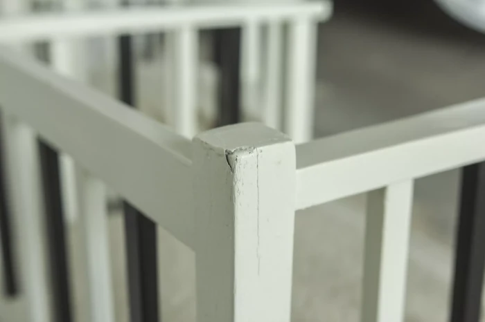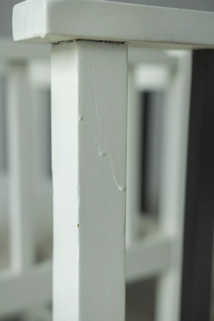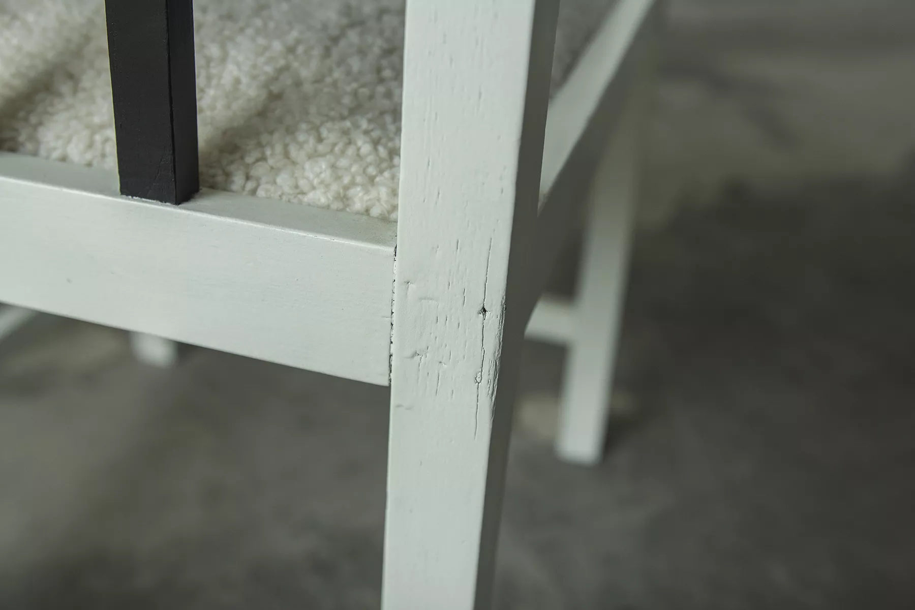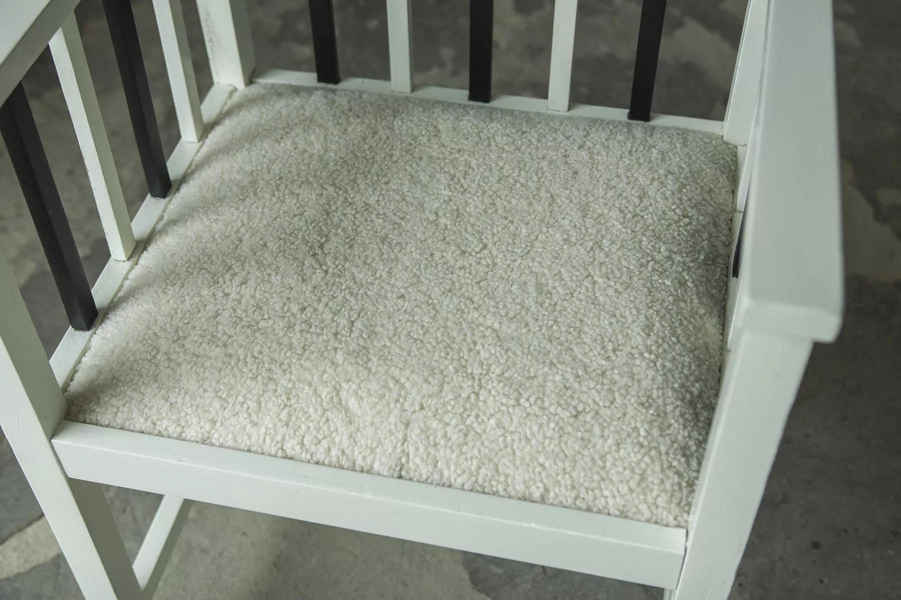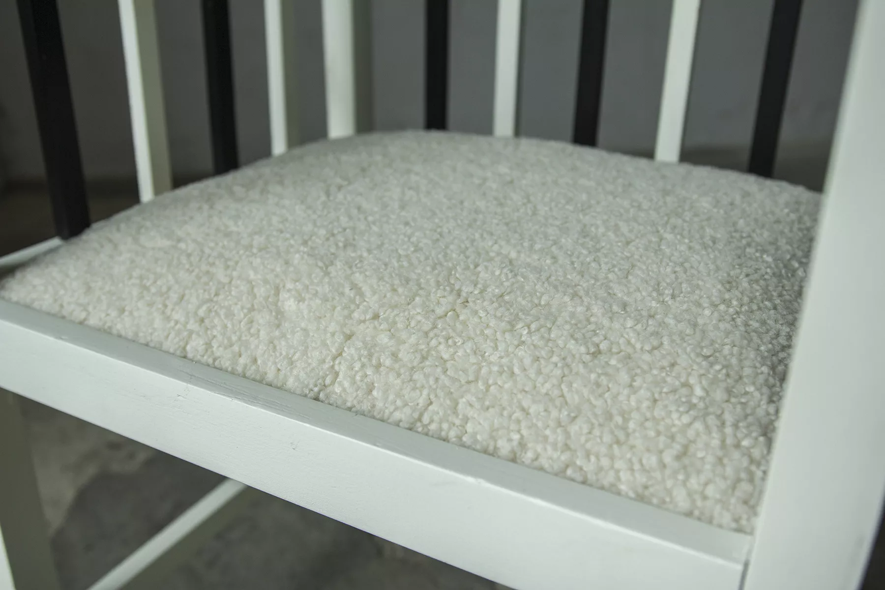 Unikatowe krzesła (fotele) o geometrycznych czystych liniach. Pochodzą z początku XX wieku i najprawdopodobniej zostały wyprodukowane w Europie środkowej około 1905 - 1920 r. Jest to solidna drewniana konstrukcja, charakteryzująca się pionowymi szczebelkami w oparciu oraz podłokietnikach i stonowaną formą architektoniczną. Krzesła zachowane są w bardzo dobrym stanie vintage, wraz z biało-czarnym malowaniem, na którym widać delikatne ślady zużycia i patyny, oraz kolejne warstwy farby. Siedziska posiadają jeszcze oryginalny system sprężyn i są wyciągane. Została wymieniona tylko tapicerka na nową. Całość jest stabilna i gotowa do użytkowania.