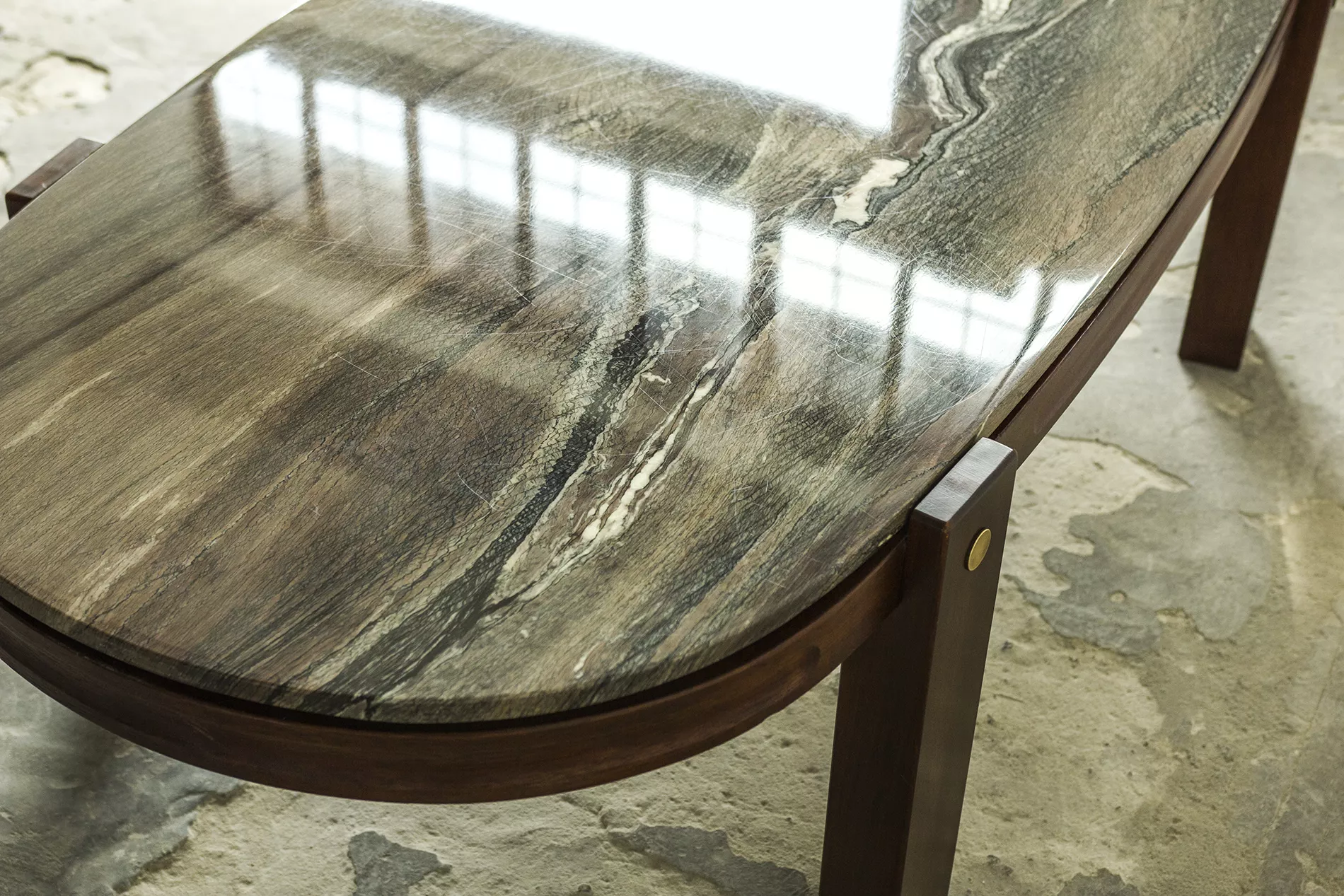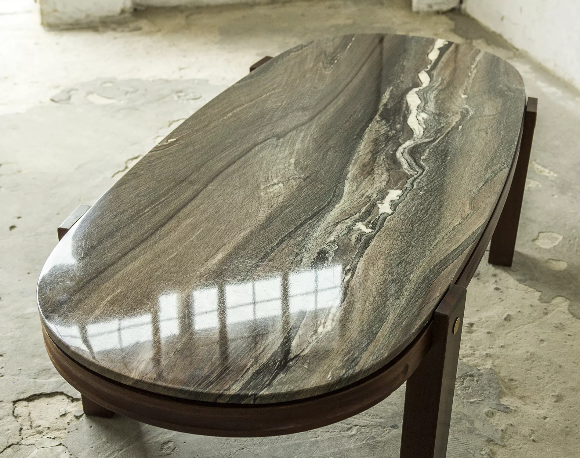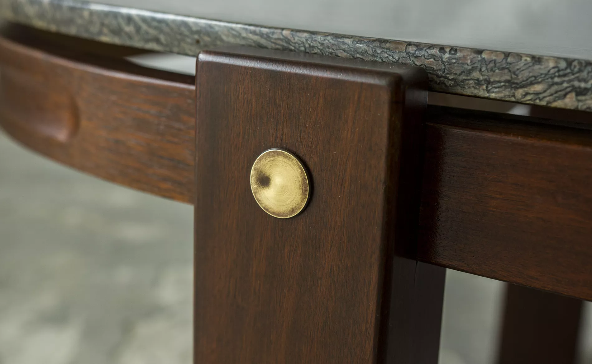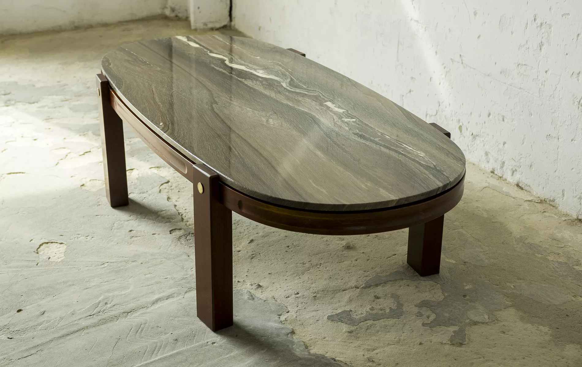 Marmurowy stolik kawowy z lat 70. Blat wykonany został z wysokiej jakości naturalnego marmuru, podstawa to masywne lite drewno tekowe. Jest to klasyczny projekt o minimalistycznej formie, co sprawia że całość prezentuje się bardzo elegancko. Stolik zachowany jest w oryginalnym i bardzo dobrym stanie.