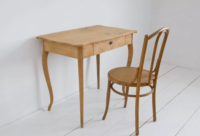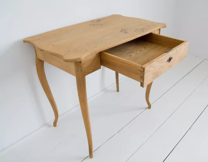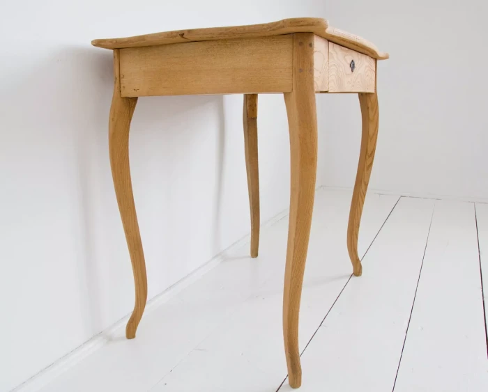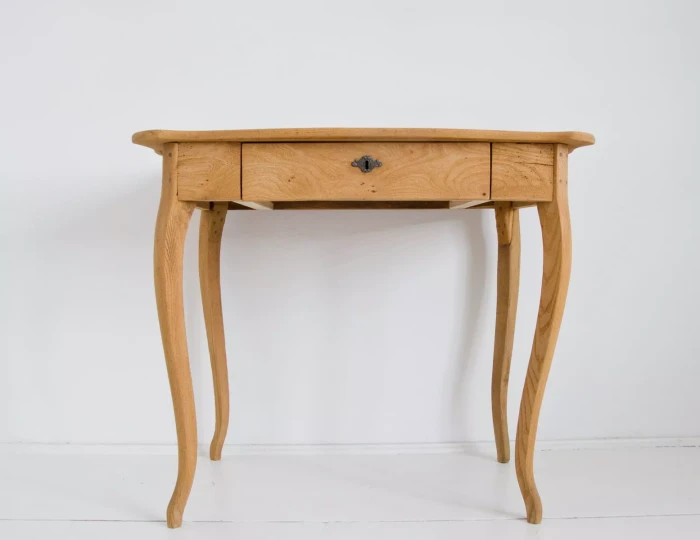 Urocze dębowe Polskie biureczko z okresu międzywojennego. Mebel jest po wymianie prowadnic szuflady i naprawie nóg, które były rozchwiane, została też usunięta stara politura do surowego drewna. Całość jest gotowa do użytku lub indywidualnego wykończenia, na tym etapie można jeszcze zmienić odcień lub pozostawić tak jak jest.