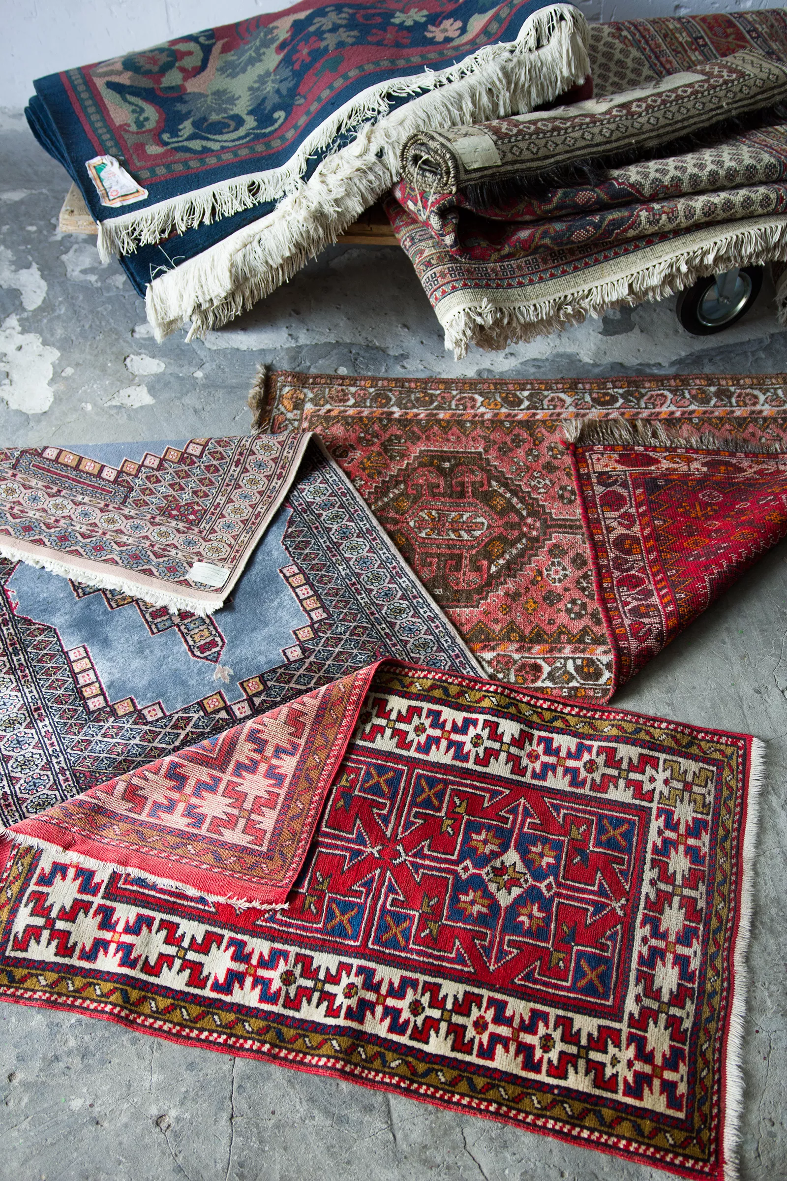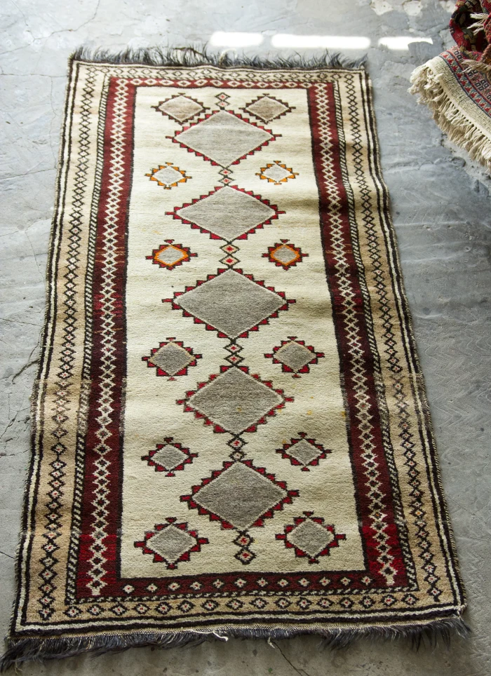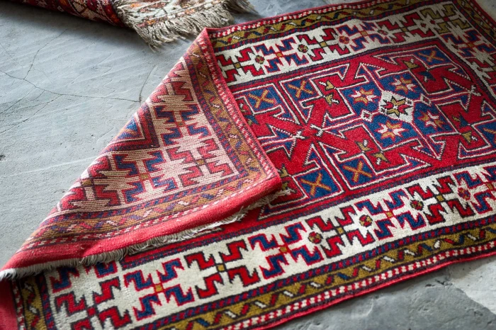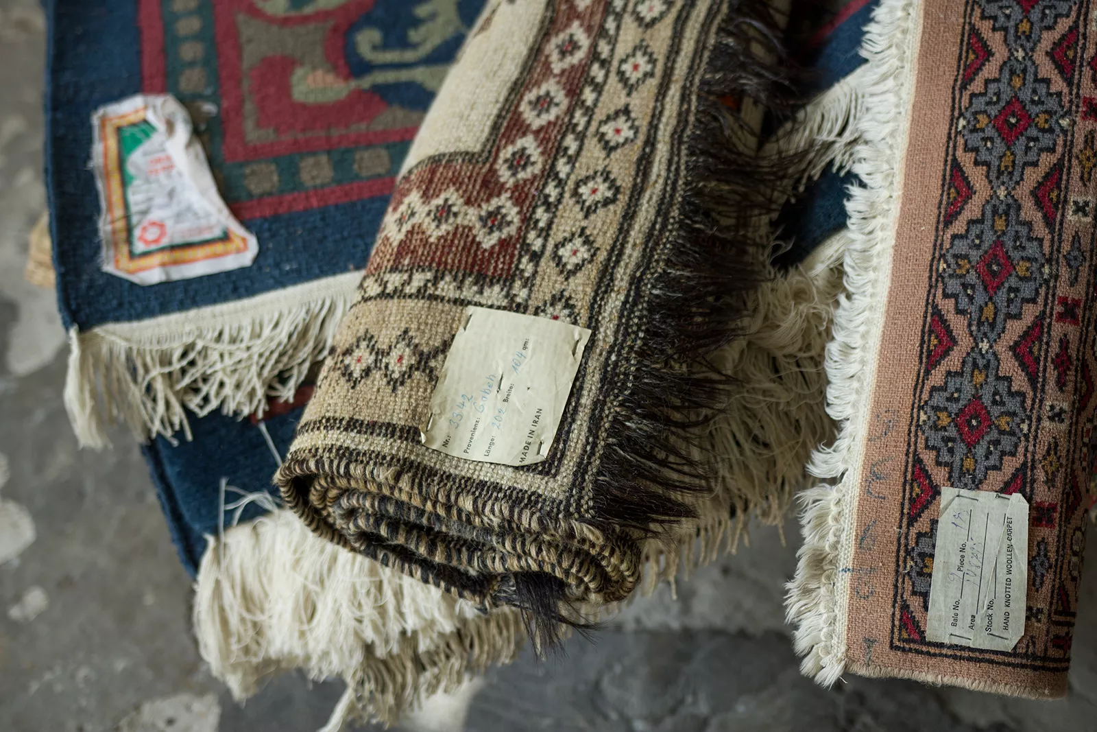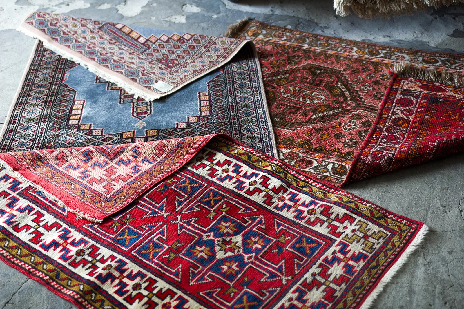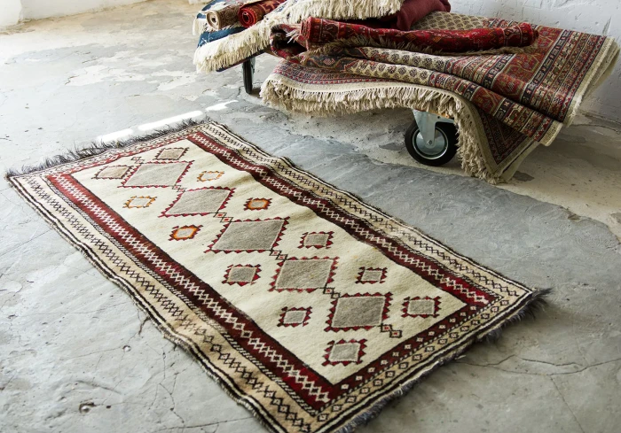 Oryginalne dywany vintage, tradycyjnie ręcznie tkane z naturalnej wełny. Niezwykle wytrzymałe i trwałe o żywej kolorystyce. W dwóch największych dywanach runo jest bardzo gęste i sprężyste, jednocześnie jest miękkie i ma naturalny połysk. Są bardzo grube i ciężki co świadczy o ich doskonałej jakości.