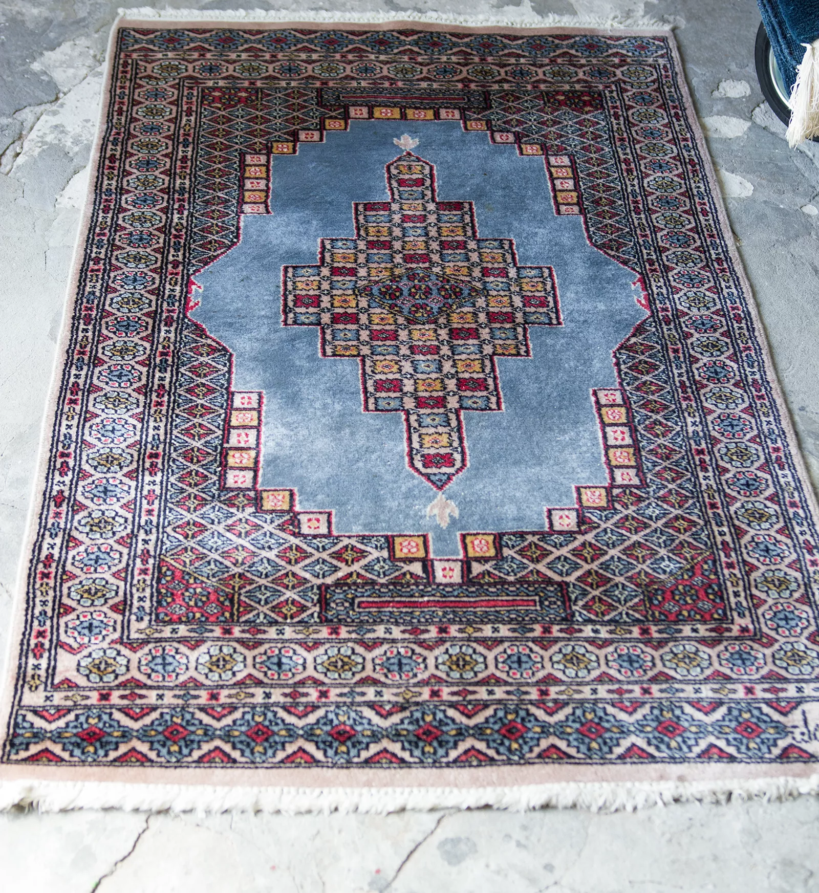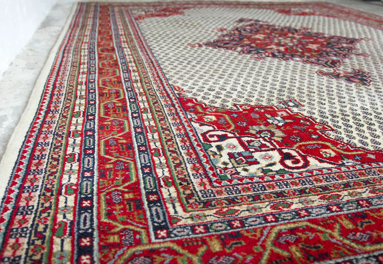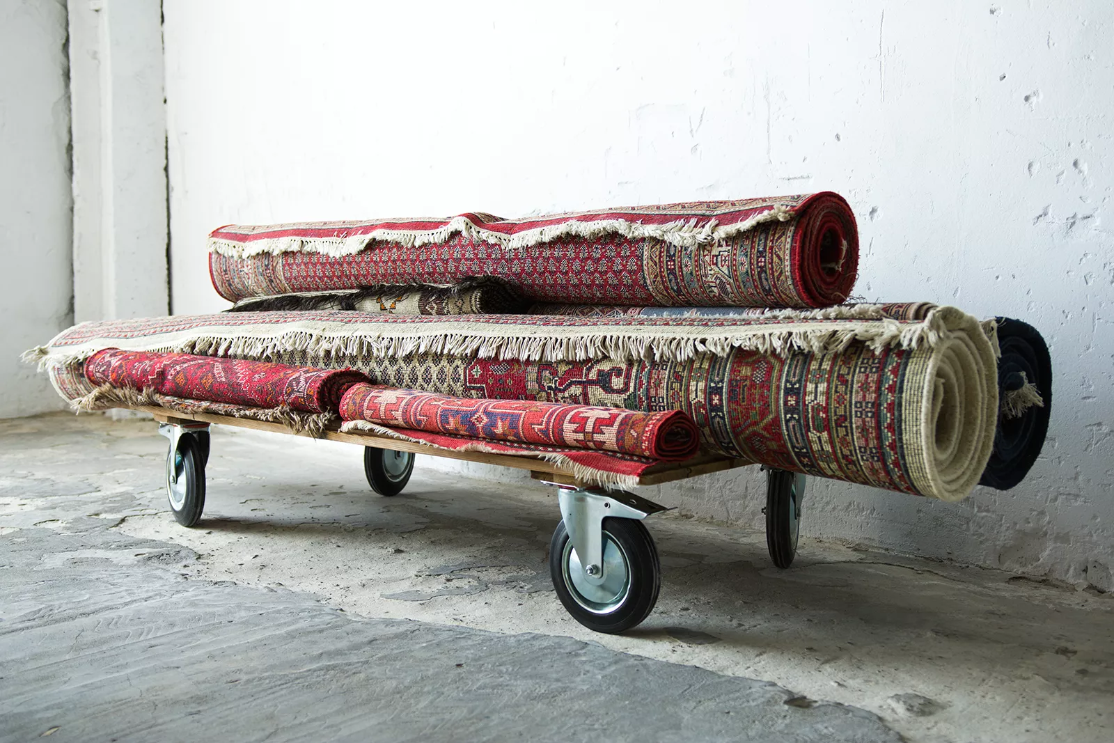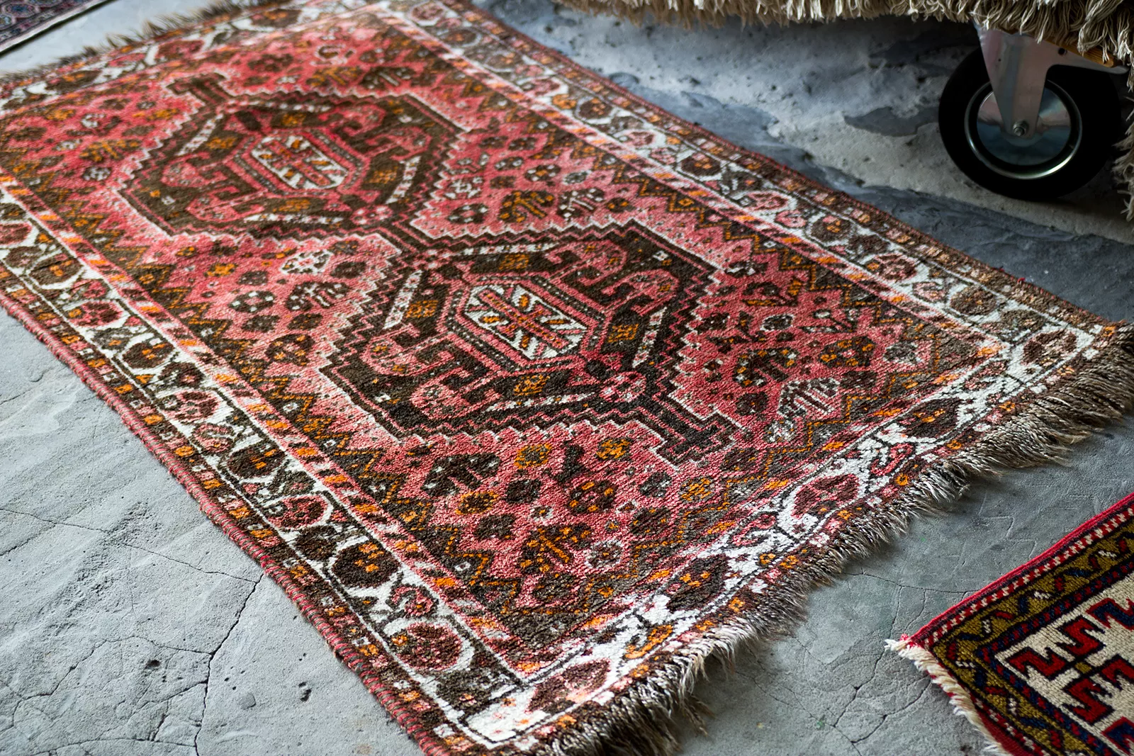 Oryginalne dywany vintage, tradycyjnie ręcznie tkane z naturalnej wełny. Niezwykle wytrzymałe i trwałe o żywej kolorystyce. W dwóch największych dywanach runo jest bardzo gęste i sprężyste, jednocześnie jest miękkie i ma naturalny połysk. Są bardzo grube i ciężki co świadczy o ich doskonałej jakości.