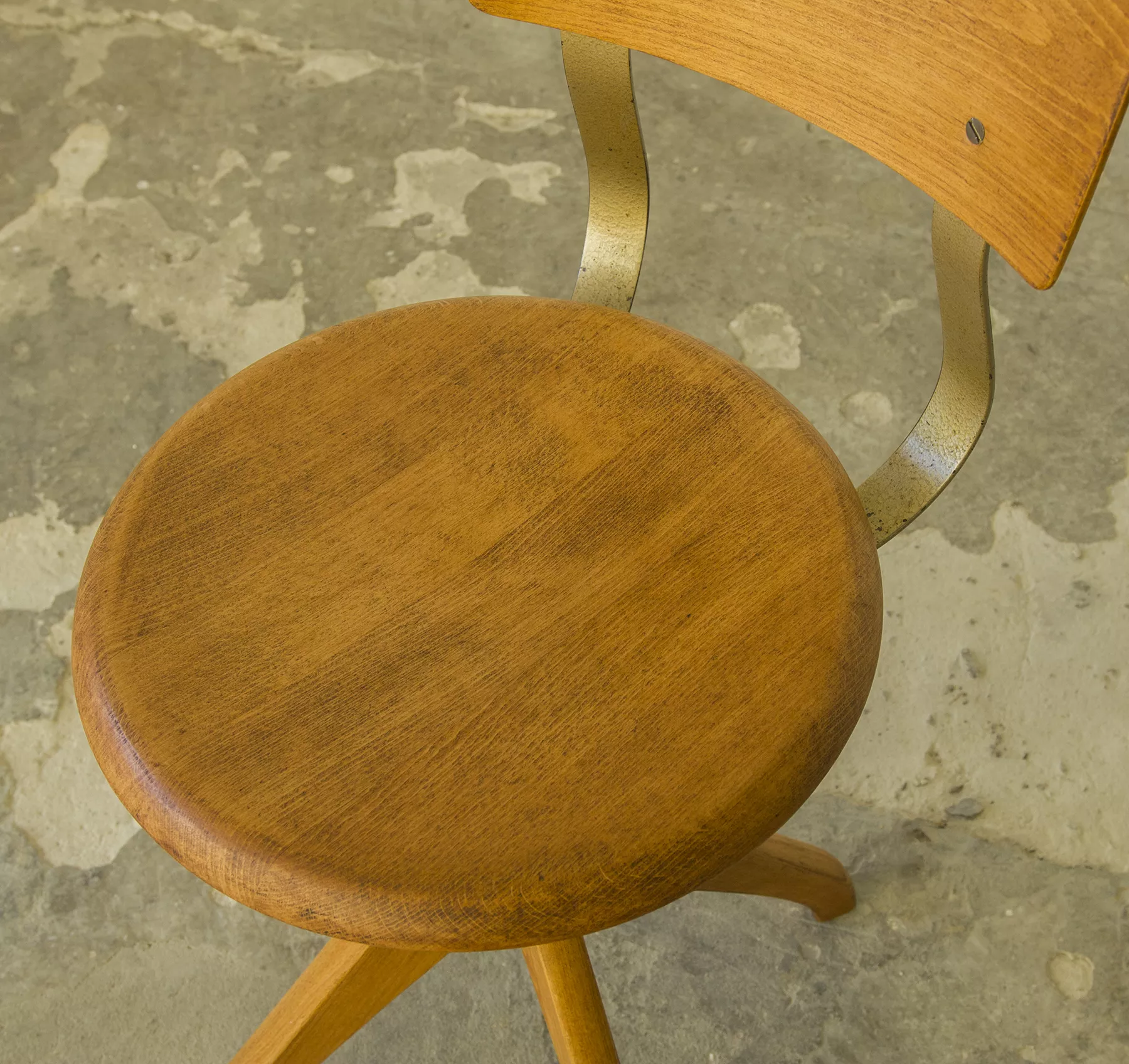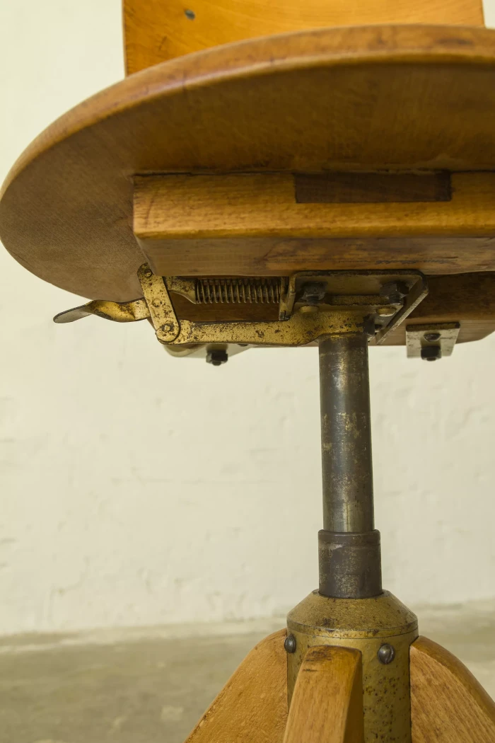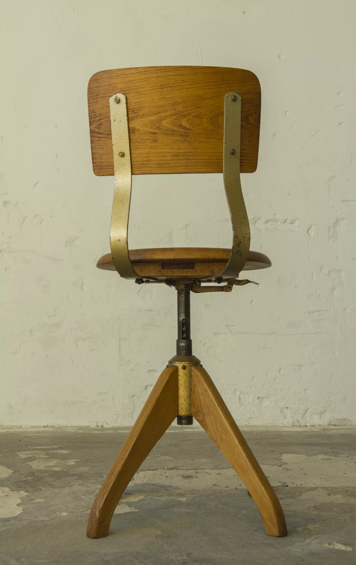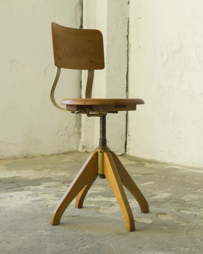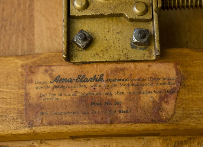 Krzesło architektoniczne Ama-Elastik (biurowe, fabryczne) z lat 30. XX wieku. Zaprojektowane przez Alberta Mengera, jest to model 365 który był wykorzystywany w wielu miejscach takich jak pracownie architektoniczne, biura, fabryki itd. Krzesło wykonane jest z giętej sklejki i drewna bukowego, posiada obrotową kolumnę z systemem amortyzacji sprężynowej i sześciostopniowy mechanizm regulacji wysokości. Zachowane jest w oryginalnym i bardzo dobrym stanie, drewniane elementy zostały poddane renowacji, metalowa konstrukcja jest po odświeżeniu i konserwacji z zachowaniem starej patyny.