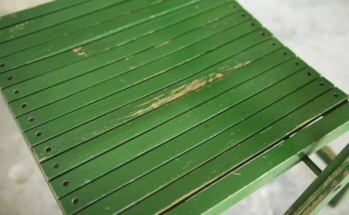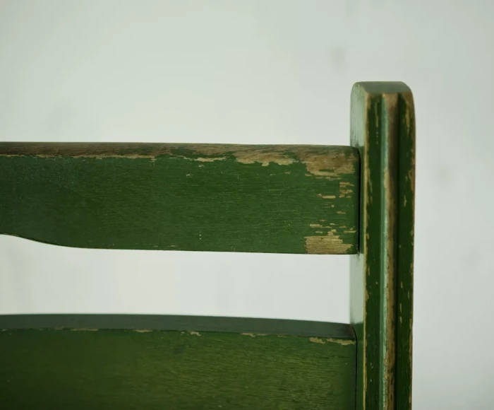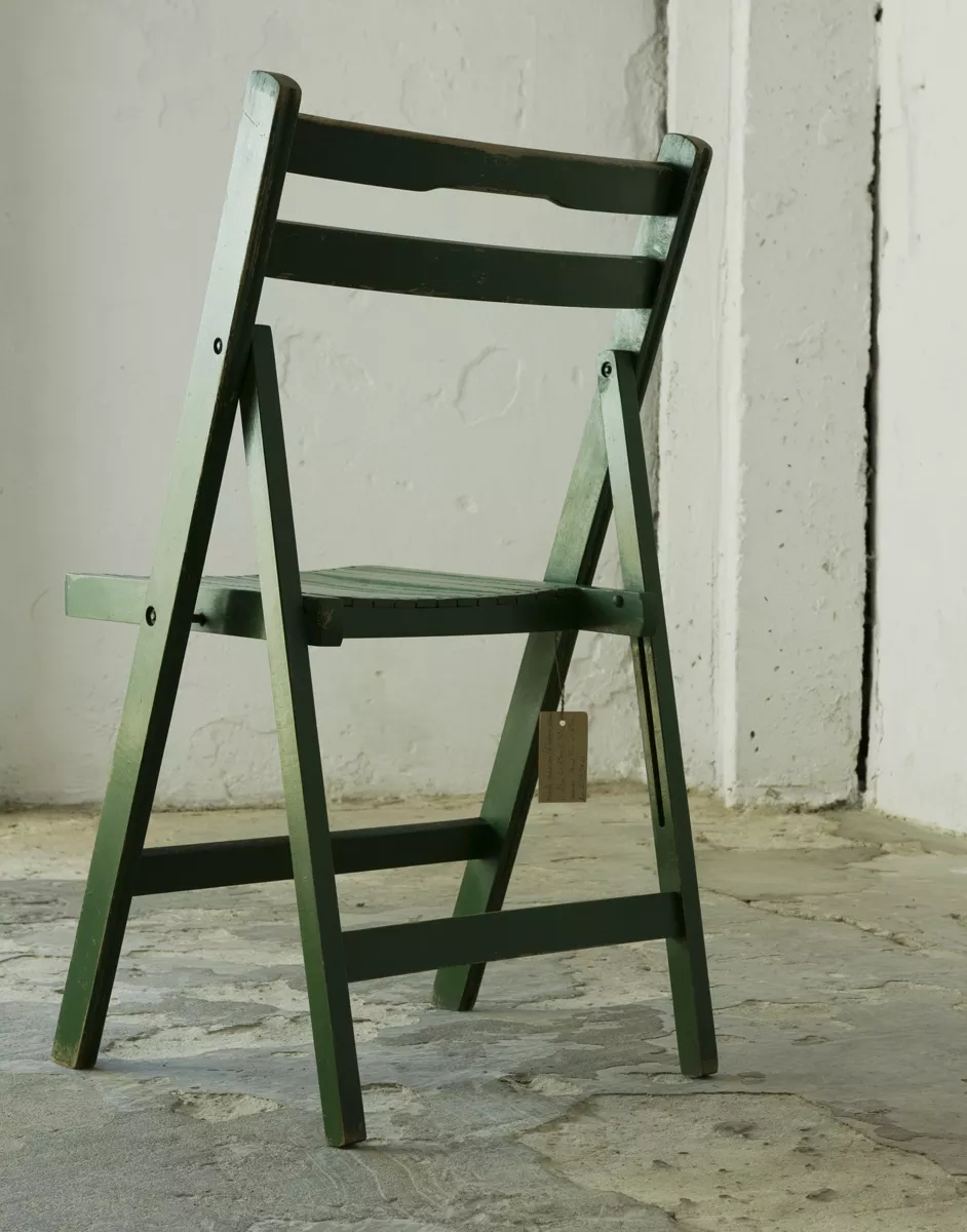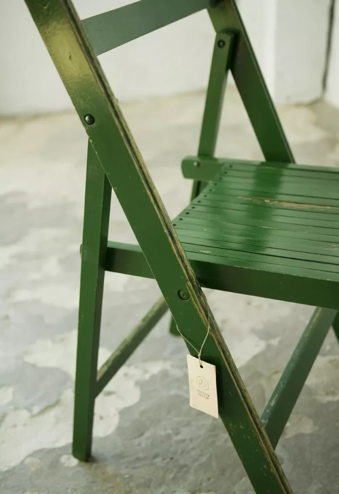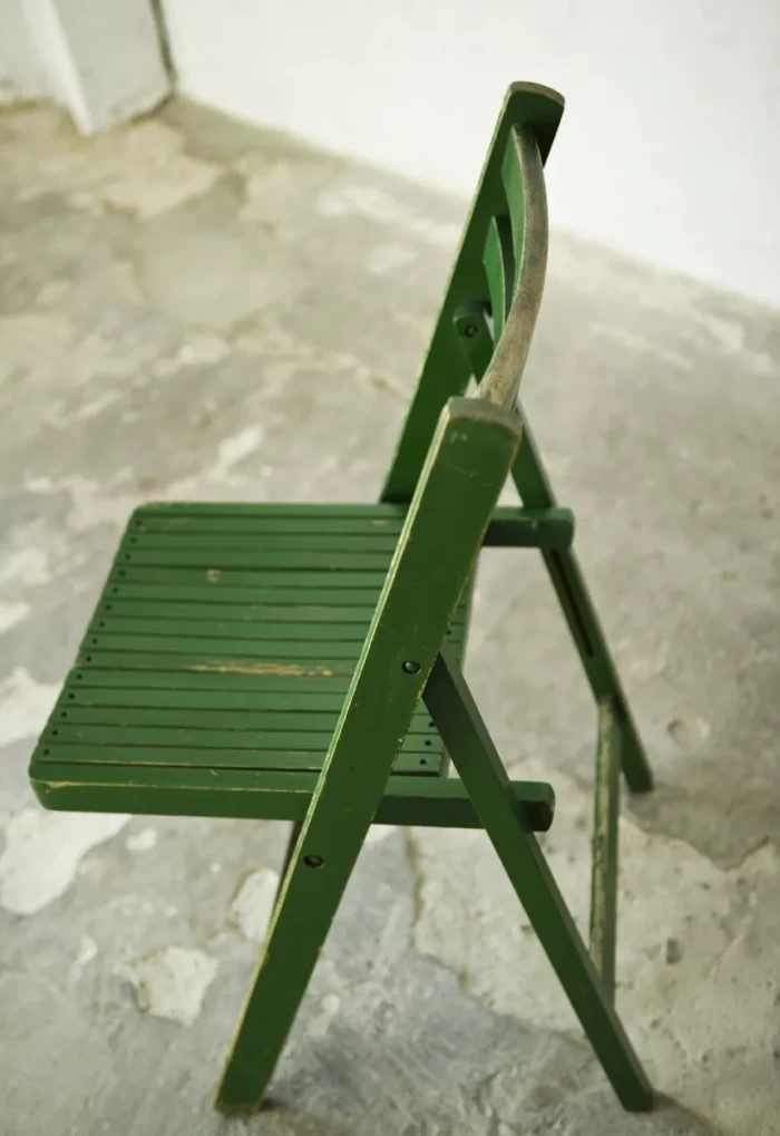 Składane drewniane krzesło z lat 60. Praktyczne i zajmujące niewiele miejsca o prostej i ponadczasowej formie. Konstrukcja wykonana jest z drewna bukowego. Krzesło jest w oryginalnym stanie vintage, posiada normalne ślady użytkowania w postaci rysek, zadrapań i delikatnych wgnieceń.