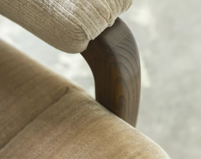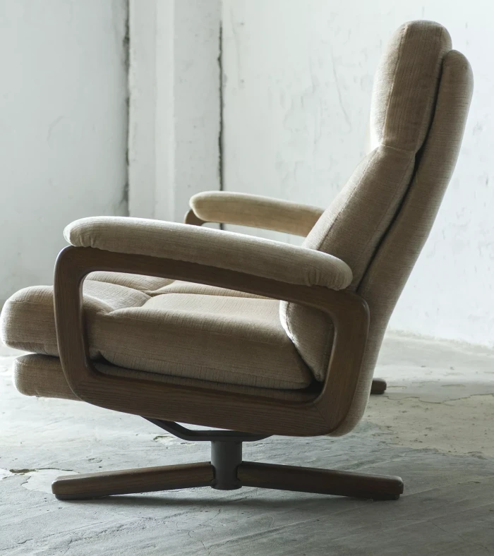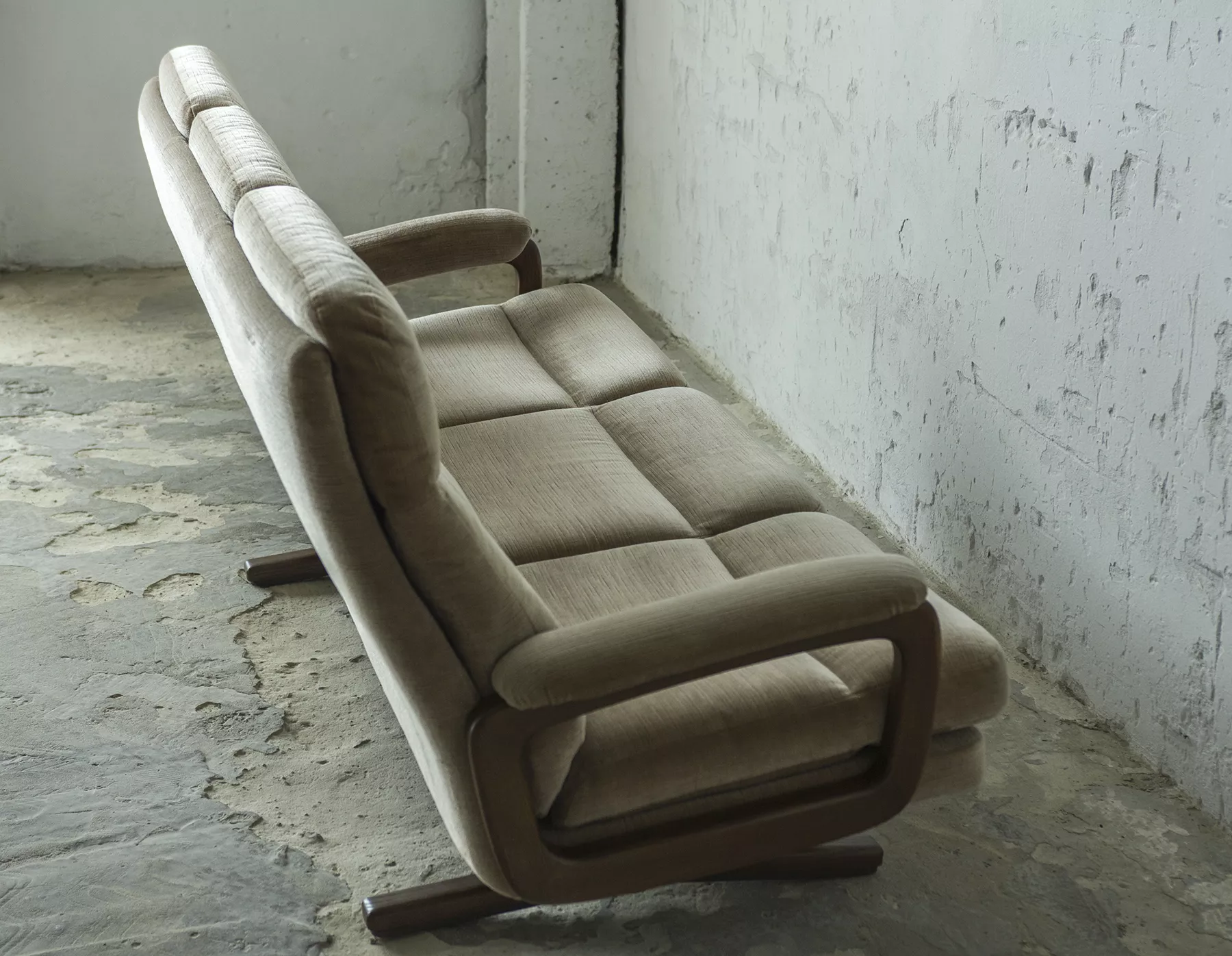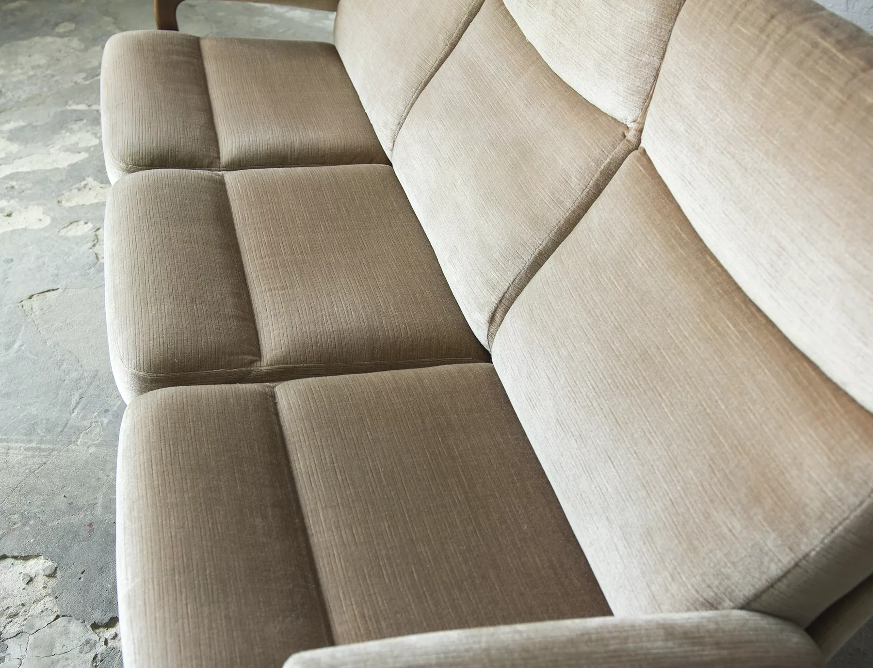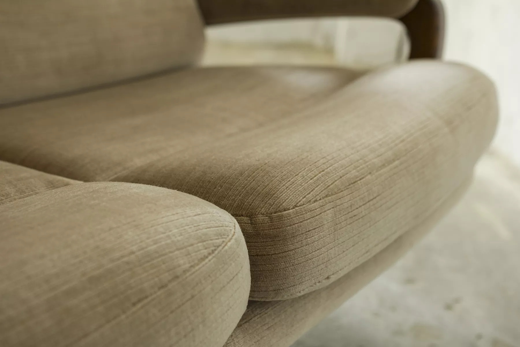 Ten model sofy trzyosobowej zaprojektowany został przez André Vandenbeucka dla szwajcarskiego producenta Strässle w latach 60. Jest kultowym klasykiem, ikoną światowego designu. Mebel zachowany jest w oryginalnym i bardzo dobrym stanie, materiałowa sztruksowa tapicerka jest bez dziur i przetarć. Sofa ma ciekawy kształt nawiązujący do stylu skandynawskiego. Osadzano jest na smukłych nóżkach co nadaje jej lekkiego wyglądu, jest stabilna i bardzo wygodna.