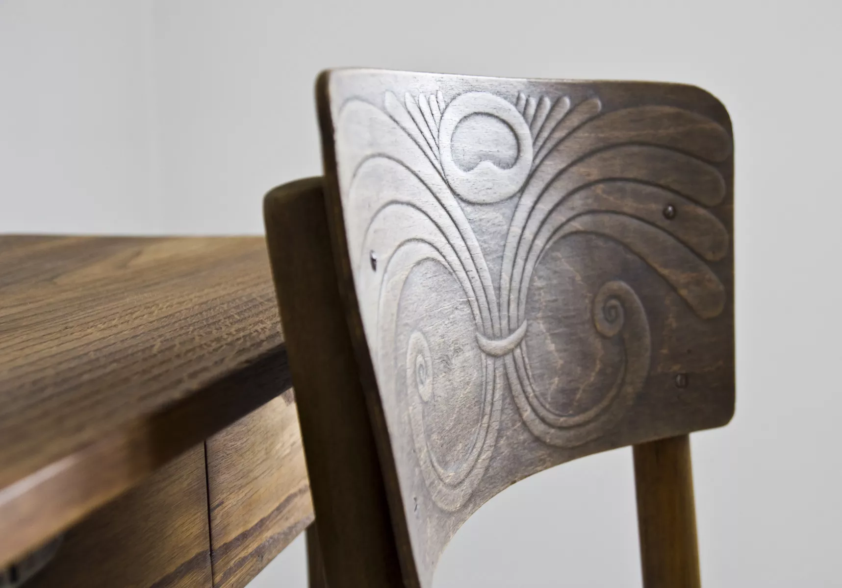 Stare dębowe biurko w komplecie z krzesłem. Meble pochodzą z Polski i zostały oczyszczone ze starej politury do surowego drewna co ujawniło przepiękne usłojenie. Całość jest bardzo stabilna, szuflada  wyłożona jest granatowym suknem. Wszystko jest czyste i nie ma zapachu stęchlizny. Meble są zakonserwowane i gotowe do użytku.