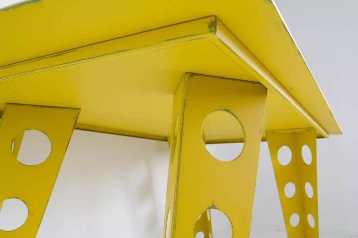 Żółty metalowy stół